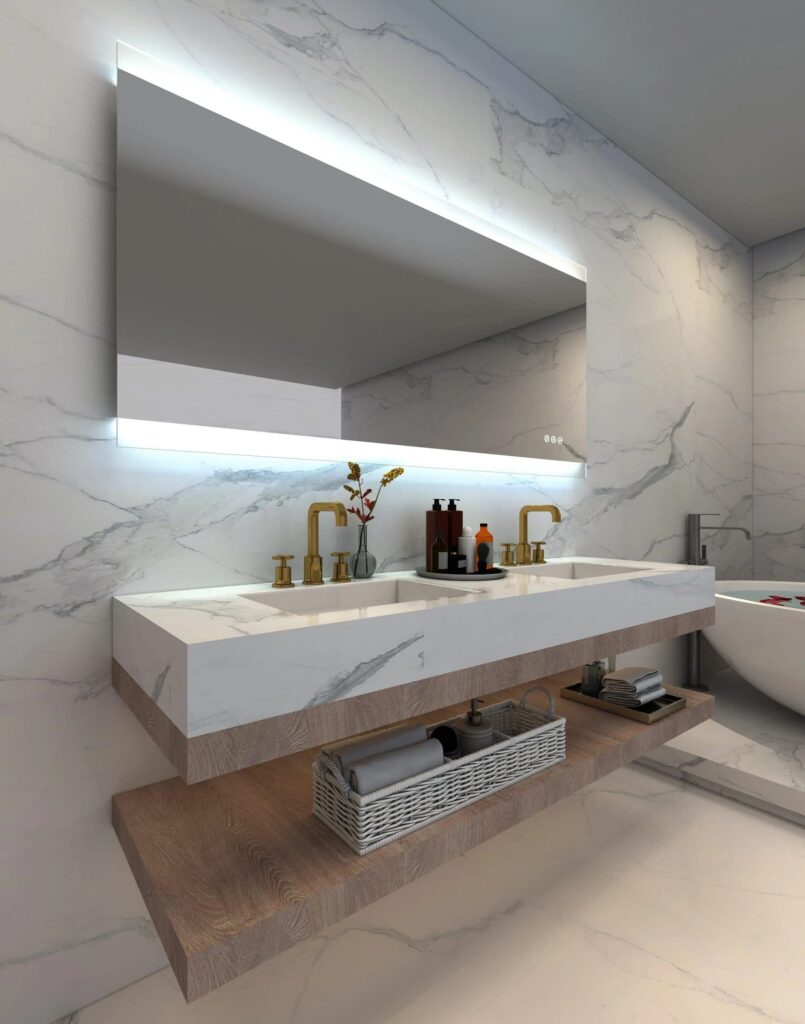 - Зеркала с подсветкой: Стильные и современные зеркала с подсветкой станут акцентом в ванной комнате, прихожей или спальне, обеспечивая дополнительное освещение.