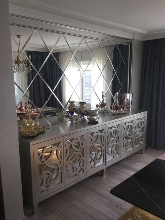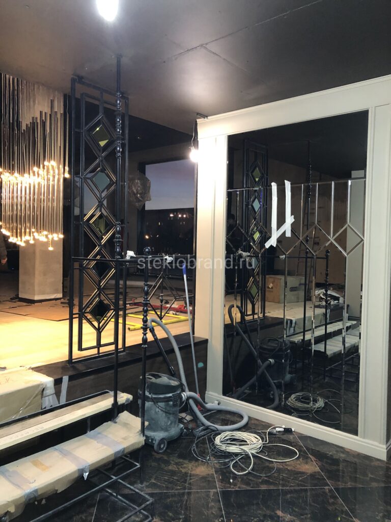 - Зеркальные стены и панно: Зеркальные панели используются для оформления стен, что позволяет создать иллюзию расширенного пространства и придать интерьеру эксклюзивность.