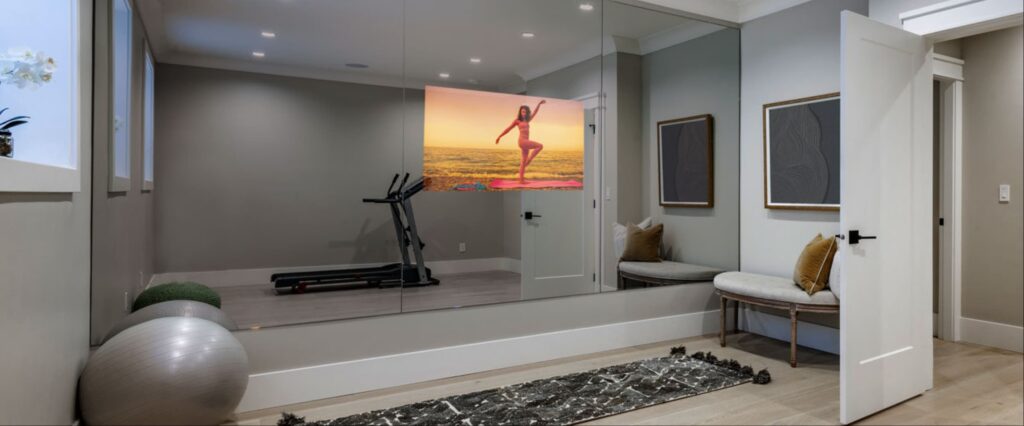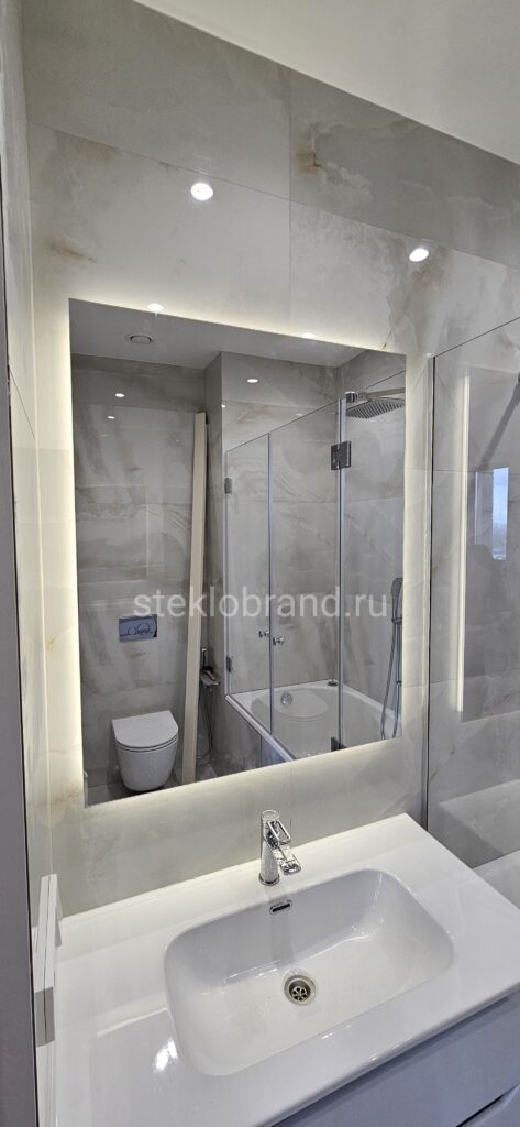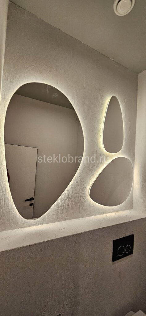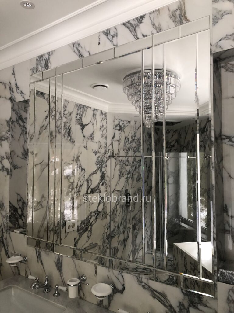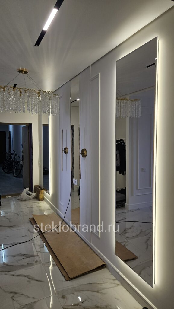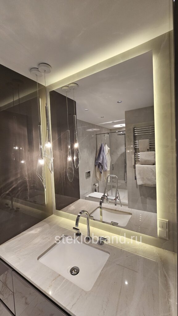 - Зеркала: Стеклянные зеркала, включая зеркала с подсветкой, становятся стильным акцентом в интерьере любого помещения.